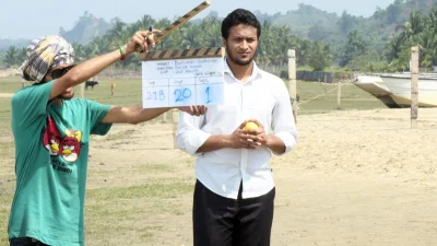 পরবর্তীতে আরেকটি পোস্ট দেন নির্মাতা। সেখানে প্রকাশিত একটি ছবিতে দেখা যায়, শুটিং স্পটে সাকিব আল হাসান। রাজিবুল উল্লেখ করেন, ‘যে মানুষ ক্যামেরার সামনে দাঁড়িয়ে অভিনয় করেছে, শুটিং করেছে, সেই মানুষ একদিন বললেন—আমি সিনেমায় অভিনয় করিনি!’