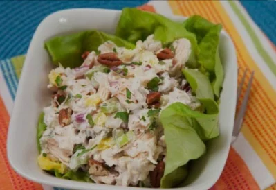 এই সালাদ তৈরি করতে লাগবে, আনারস ছোট ছোট টুকরো করে কেটে নেওয়া ৩/৪ কাপ, মুরগির বুকের মাংস সামান্য লবন, গোলমরিচ গুঁড়া দিয়ে সিদ্ধ ১/২ কাপ, আপেল টুকরো করে কাটা ১/২ কাপ, আলু সিদ্ধ কিউব করা ১/২ কাপ।