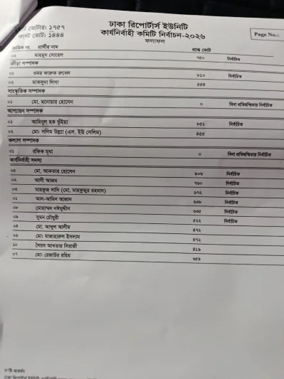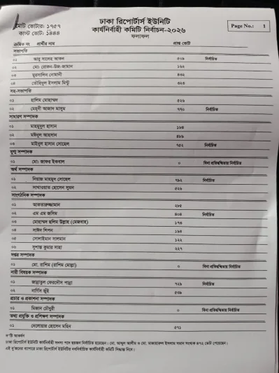 রোববার (৩০ নভেম্বর) ডিআরইউ প্রাঙ্গণে নির্বাচন কমিশনের চেয়ারম্যান এম এ আজিজ ফলাফল ঘোষণা করেন।