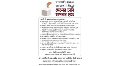 পরিবর্তনের চাবি এবার আপনারই হাতে। গণভোট সম্পর্কে আরও বিস্তারিত জানতে ভিজিট করুন,www.gonovote.gov.bd এবং www.gonovote.bd।
