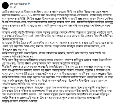 সাবেক প্রধানমন্ত্রী ও বিএনপি চেয়ারপারসন বেগম খালেদা জিয়ার প্রতি নিজের দীর্ঘদিনের শ্রদ্ধা ও সমর্থনের কথা জানিয়েছেন অন্তর্বর্তীকালীন সরকারের আইন উপদেষ্টা ড. আসিফ নজরুল।