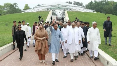 পারিবারিক জিয়ারত শেষে তারেক রহমান বিএনপির পক্ষ থেকে দলীয় চেয়ারম্যান হিসেবে পুষ্পস্তবক অর্পণ করে শ্রদ্ধা নিবেদন করেন। এ সময় বিএনপি মহাসচিব মির্জা ফখরুল ইসলাম আলমগীর, স্থায়ী কমিটির সদস্য নজরুল ইসলাম খান, ইকবাল হাসান মাহমুদ টুকু, ডা. এজেডএম জাহিদ হোসেন, চেয়ারম্যানের উপদেষ্টা কাউন্সিলের সদস্য ব্যারিস্টার মাহবুব উদ্দিন খোকনসহ দলের শীর্ষ নেতারা উপস্থিত ছিলেন।
