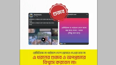 ডাক, টেলিযোগাযোগ ও তথ্যপ্রযুক্তি প্রতিমন্ত্রী জুনাইদ আহমেদ পলক জানিয়েছেন, ‘রেমিট্যান্স না পাঠালে দেশে আসতে দেওয়া হবে না’- এমন একটি মিথ্যা তথ্য ও গুজব সোশ্যাল মিডিয়াতে অপপ্রচার হচ্ছে। এ ধরনের গুজব ও অপপ্রচার বিশ্বাস না করার আহ্বান জানান তিনি। শুক্রবার (২৬ জুলাই) রাতে নিজের ভেরিফায়েড ফেসবুক পেজে এ আহ্বান জানান প্রতিমন্ত্রী।