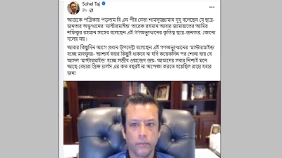 ফেসবুক পোস্টে সোহেল তাজ লিখেছেন, ‘আজকে পত্রিকায় পড়লাম বিএনপির নেতা শামসুজ্জামান দুদু বলেছেন যে, ছাত্র-জনতার অভুত্থানের ‘মাস্টারমাইন্ড’ তারেক রহমান। আবার জামায়াতের আমির শফিকুর রহমান সাহেব বলেছেন, ‘এই গণঅভ্যুত্থানের কৃতিত্ব ছাত্র-জনতার, কোনো দলের নয়।’ আবার কিছুদিন আগে প্রধান উপদেষ্টা বলেছেন, ‘এই গণঅভ্যুত্থানের মাস্টারমাইন্ড হচ্ছে মাহফুজ।