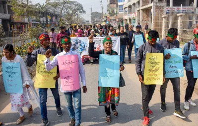 পাঠ্যপুস্তক থেকে ‘আদিবাসী’ গ্রাফিতি বাতিলের প্রতিবাদ