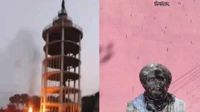 ১২৩ ফুট উঁচু বঙ্গবন্ধু টাওয়ার ভাঙচুর-অগ্নিসংযোগ