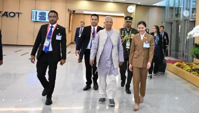 বিমসটেক সম্মেলনে যোগ দিতে ব্যাংককে পৌঁছেছেন প্রধান উপদেষ্টা ড. মুহাম্মদ ইউনূস। বৃহস্পতিবার (৩ এপ্রিল) দুপুর ১২টায় তিনি থাইল্যান্ডে পৌঁছান। এর আগে, সকাল ৮টা ৫৫ মিনিটে হযরত শাহজালাল আন্তর্জাতিক বিমানবন্দর থেকে ব্যাংককের উদ্দেশে দেশ ছাড়েন তিনি।