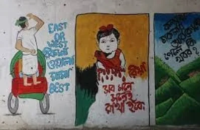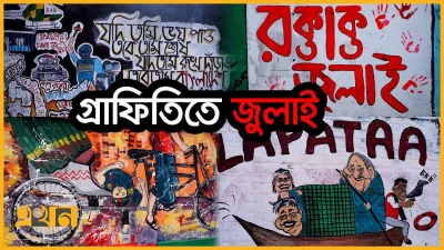 দেয়ালগুলোর গ্রাফিতিতে ‘সোনার বাংলা আজ মৃত্যুপুরী কেন?’, ‘আমার ভাইদের মারলি কেন?’, ‘সেভ দ্য কান্ট্রি জয়েন দ্য ফাইট’, ‘পুলিশি হত্যার বিচার চাই’, ‘একদিকে নাটক করে অন্যদিকে গুম করে’, ‘৫২ দেখিনি ২৪ দেখেছি’, ‘সম্পদের হিসাব পরে লাশের হিসাব আগে’, ‘হামার বেটাক মারলু ক্যান’ ইত্যাদি লেখা হয়। গ্রাফিতিতে স্থান পেয়েছে ছাদে গিয়ে গুলিতে নিহত ছোট্ট রিয়ার কথাও।