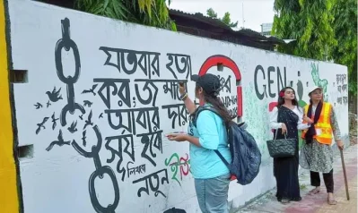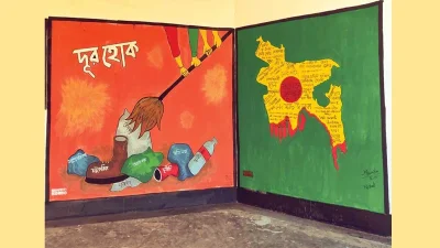 ২৮ জুলাই রাজধানীর পলাশীতে বাংলাদেশ প্রকৌশল বিশ্ববিদ্যালয়ে (বুয়েট) দেয়াল লিখন ও গ্রাফিতি কর্মসূচি পালন করেন কার্টুনিস্ট এবং চারুকলার শিক্ষার্থীরা। তবে পুলিশি বাধায় তাদের ওই কর্মসূচি আর শেষ করা সম্ভব হয়ে ওঠে না। পুলিশ তাদের রংতুলি জব্দ করে। এ ছাড়া চট্টগ্রাম বিশ্ববিদ্যালয়, সিলেট শাহজালাল বিজ্ঞান ও প্রযুক্তি বিশ্ববিদ্যালয়, ইস্ট-ওয়েস্ট ইউনিভার্সিটিসহ দেশের বিভিন্ন স্থানে দেয়াল লিখন ও গ্রাফিতি করা হয়।
