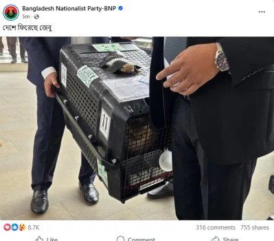 বিএনপির ভারপ্রাপ্ত চেয়ারম্যান তারেক রহমানের সঙ্গে দেশে ফিরেছে প্রিয় পোষা বিড়াল ‘জেবু’। সাইবেরিয়ান জাতের লোমশ এই বিড়ালটি মূলত তারেক রহমানের কন্যা ব্যারিস্টার জাইমা রহমানের পোষা।