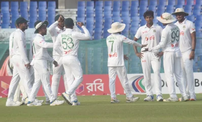 সোমবার (১ এপ্রিল) ব্যাটিংয়ে নেমে সুবিধা করতে পারেননি টাইগাররা। দিনের শুরু থেকে সময়ের ব্যবধানে উইকেট হারিয়ে শেষ পর্যন্ত ১৭৮ রানেই অলআউট হয় বাংলাদেশ দল। দলের হয়ে সর্বোচ্চ ৫৪ রান করেন ওপেনার জাকির হাসান। ৩৩ রান করেন মুমিনুল হক সৌরভ।