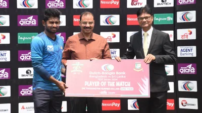 লাহিরু কুমারা ৪ উইকেট শিকার করছেন। এছাড়া কামিন্দু মেন্ডিস পেয়েছেন ৩ উইকেট।