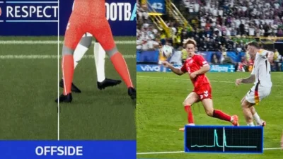 পেনাল্টি থেকে কাই হাভের্টজ গোল করে জার্মানি ১-০ গোলে এগিয়ে নেন। দুটো সিদ্ধান্ত ডেনমার্কের বিরুদ্ধে গেছে। ফলে কোচ হুলমান্ড ভিএআর ব্যবহারের বিষয়টি নিয়ে প্রশ্ন তুলেছেন। হুলমান্ড বলেন, দুটো সিদ্ধান্ত ভিএআর দেখে নেওয়া হয়েছে। অফসাইডের বিষয়ে আমার কাছে ছবি রয়েছে। এক সেন্টিমিটারের ব্যবধান। যেভাবে আমরা ভিএআর এর ব্যবহার করছি তার কোনো মানে হয় না।