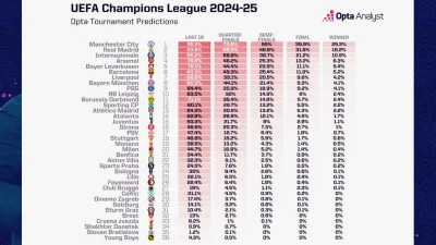 সবমিলিয়ে ইউরোপের শীর্ষ দলগুলোই তাদের বিচারে এগিয়ে রয়েছে। দলের সংখ্যা বাড়ায় এবং নিয়ম বদলানোর পরও অপ্টার ভবিষ্যদ্বাণীতে বেশি সম্ভাবনা দেখা গেছে পেপ গার্দিওলার ম্যানসিটির। তাদের হিসাবে এবার সিটির চ্যাম্পিয়ন হওয়ার সম্ভাবনা ২৫.৩ শতাংশ এবং ফাইনালে খেলার সম্ভাবনা ৩৯.৯ শতাংশ। এর আগের মৌসুমে ইংলিশ প্রিমিয়ার লিগের ক্লাবটি কোয়ার্টার ফাইনাল থেকে পেনাল্টি শ্যুট আউটে বিদায় নিয়েছিল। এর আগে ২০২৩ আসরে ইন্টার মিলানকে হারিয়ে জিতেছিল শিরোপা।