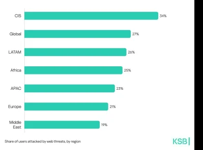 ২০২৪ থেকে ২০২৫ সালের সব অঞ্চলে সাইবার হুমকি উল্লেখযোগ্য ভাবে বেড়েছে। এপিএসি ও ইউরোপে পাসওয়ার্ড স্টিলার এবং স্পাইওয়্যার হামলা সবচেয়ে দ্রুত হারে বৃদ্ধি পেয়েছে। ল্যাটিন আমেরিকা, আফ্রিকা এবং সিআইএস অঞ্চলগুলোতেও ম্যালওয়্যার আক্রমণ উল্লেখযোগ্যভাবে বেড়েছে।