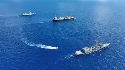 ইউনাভফোর এর ‘এক্স’ হ্যান্ডলে প্রকাশ করা ছবিতে দেখা যায়, অপারেশন আটলান্টার দুটি যুদ্ধজাহাজ এমভি আব্দুল্লাহকে পাহারা দিয়ে যাচ্ছে।