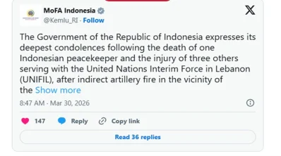 ইন্দোনেশিয়ার পররাষ্ট্র মন্ত্রণালয় নিহত শান্তিরক্ষীর স্মরণে গভীর শোক প্রকাশ করেছে এবং এই ঘটনার একটি ‘পুঙ্খানুপুঙ্খ ও স্বচ্ছ’ তদন্তের দাবি জানিয়েছে। বিবৃতিতে বলা হয়েছে, ‘আন্তর্জাতিক আইন অনুযায়ী জাতিসংঘ শান্তিরক্ষীদের নিরাপত্তা ও সুরক্ষাকে অবশ্যই সর্বোচ্চ গুরুত্ব দিতে হবে। শান্তিরক্ষীদের ওপর কোনো ধরণের আঘাত গ্রহণযোগ্য নয় এবং এটি বিশ্বশান্তি রক্ষার প্রচেষ্টাকে বাধাগ্রস্ত করে।’