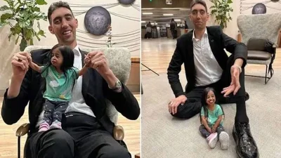 বিশ্বের সবচেয়ে লম্বা মানুষটির নাম সুলতান কোসেন। এই তুর্কি নাগরিকের উচ্চতা ৮ ফুট ৯ ইঞ্চি। বিশ্বের সবচেয়ে লম্বা পুরুষ তিনি। অন্যদিকে সবচেয়ে কম উচ্চতার ২ ফুট ৭ ইঞ্চির জ্যোতি আমেজের বাড়ি ভারতে। সম্প্রতি ক্যালিফোর্নিয়ায় দ্বিতীয়বার দেখা হয়েছে তাদের। এর আগে ২০১৮ সালে তাদের একসঙ্গে দেখা গিয়েছিল।
